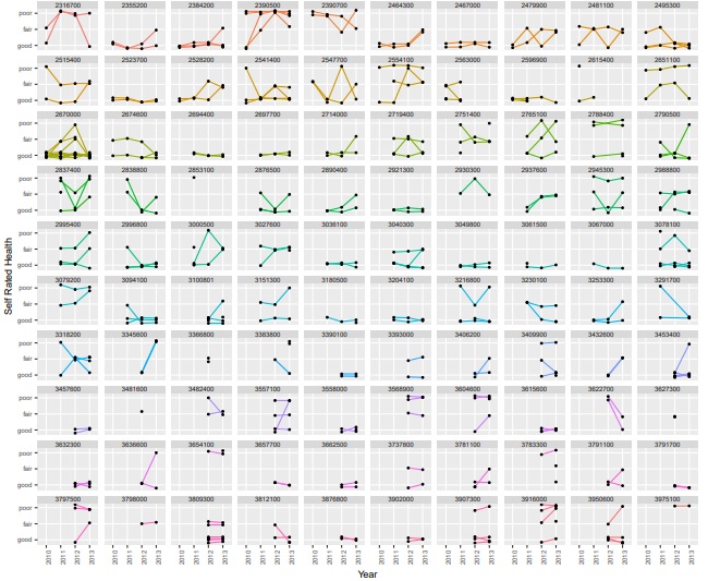 This paper is motivated by the panel surveys, called Statistics on Income and Living Conditions (SILC), conducted annually on (randomly selected) country-representative households to monitor EU 2020 aims on poverty reduction. We particularly consider the surveys conducted in Turkey, within the scope of integration to the EU, between 2010 and 2013. Our main interests are on health aspects of economic and living conditions. The outcome is {\it self-reported health} that is clustered longitudinal ordinal, since repeated measures of it are nested within individuals and individuals are nested within families. Economic and living conditions were measured through a number of individual- and family-level explanatory variables. The questions of interest are on the marginal relationships between the outcome and covariates that are addressed using a polytomous logistic regression with Bridge distributed random-effects. This choice of distribution allows one to {\it directly} obtain marginal inferences in the presence of random-effects. Widely used Normal distribution is also considered as the random-effects distribution. Samples from the joint posterior density of parameters and random-effects are drawn using Markov Chain Monte Carlo. Interesting findings from public health point of view are that differences were found between sub-groups of employment status, income level and panel year in terms of odds of reporting better health.
